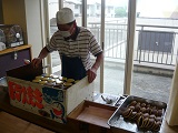 湖月堂様が訪問してくださり、入所者の方に焼きたてのどら焼きを提供して