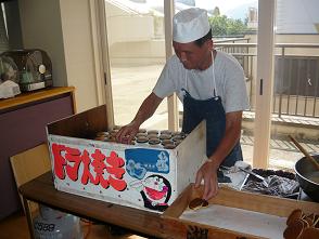湖月堂さんによるどら焼きの実演を見学しながら、
