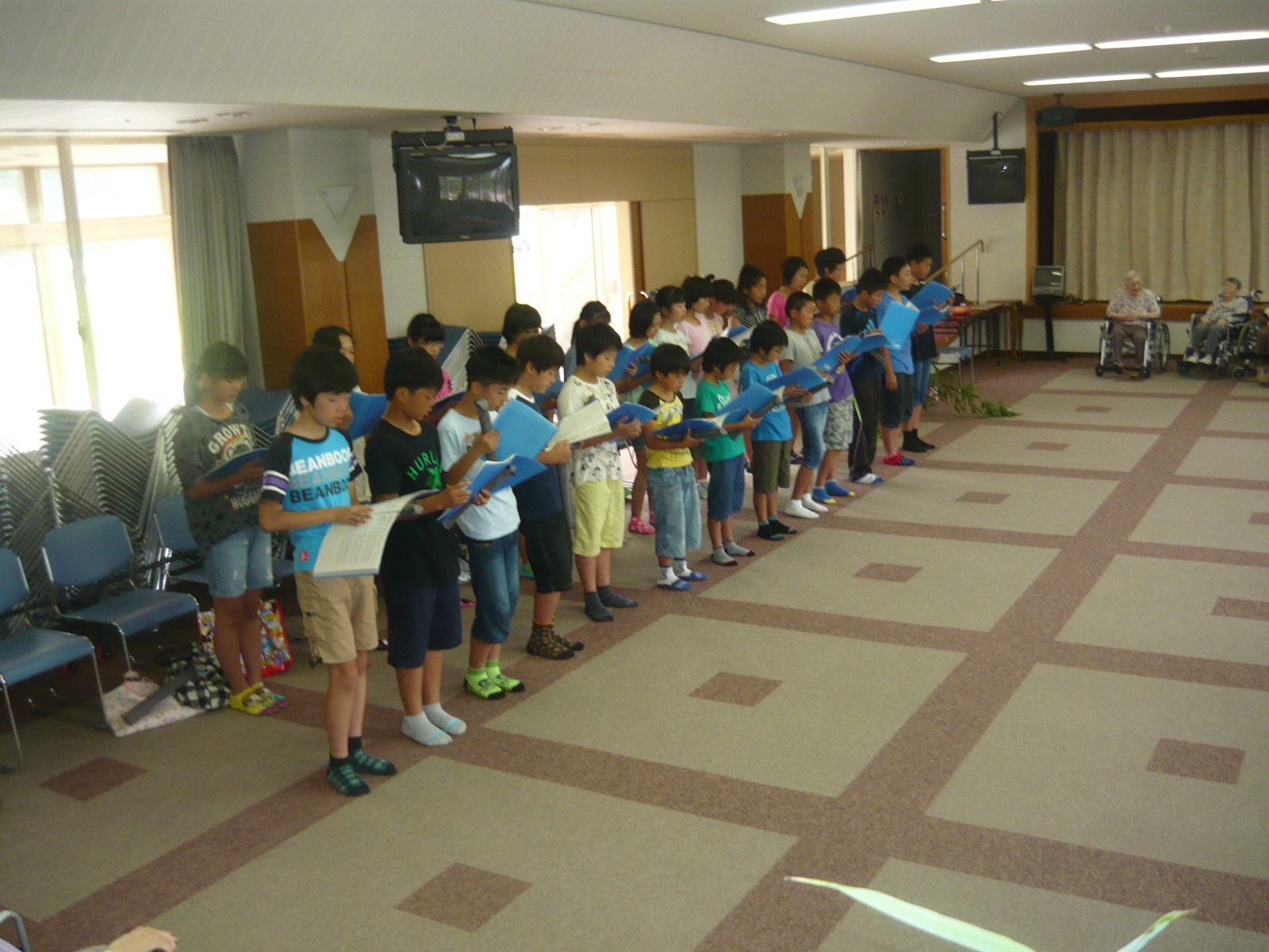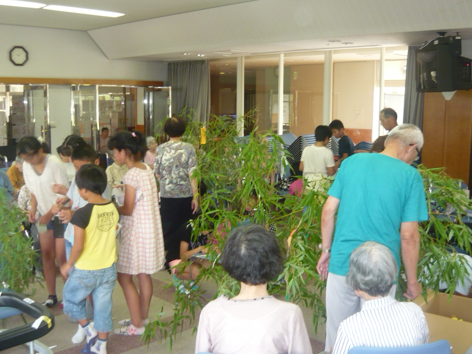 歌のプレゼントの後、みんなで七夕の飾り付けを
