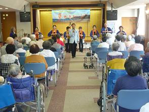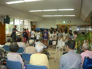 後半の「日高光路ショー」では、入所者さんの側で歌ったり
