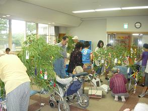 和田小学校の児童さんと一緒に七夕の笹の飾り付けを