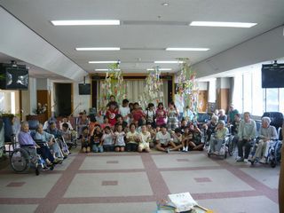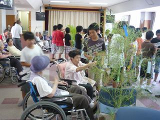 和田小学校の児童さんと一緒に七夕の笹の飾り付けを行いました。