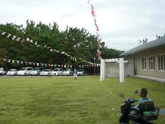 今日は芝生広場でグラウンドゴルフを予定していましたが、