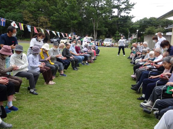 利用者の皆さんは弾ける笑顔で子供たちに声援を送ってました。