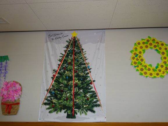 少し早いのですがクリスマスの壁飾りを作ってくれました。