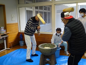 年忘れの餅つき大会を行いました。2人1組になって「よいしょー!よい