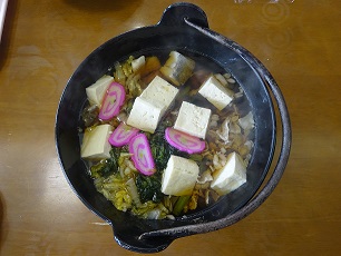 本日は、昼食にお鍋を提供させていただきました。魚や肉などたくさんの具材