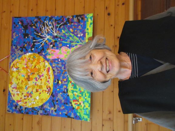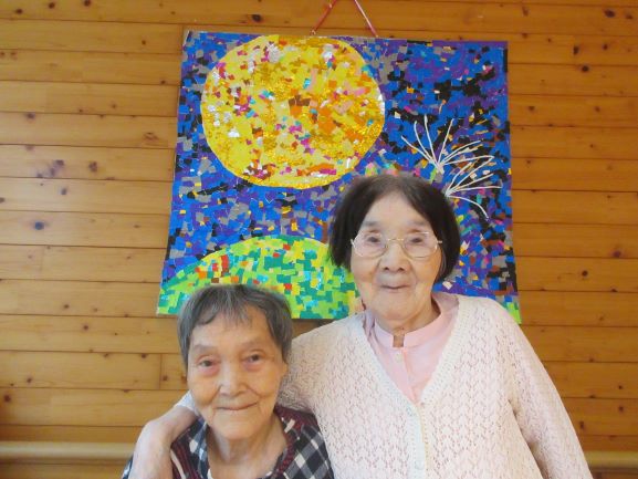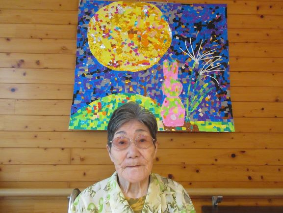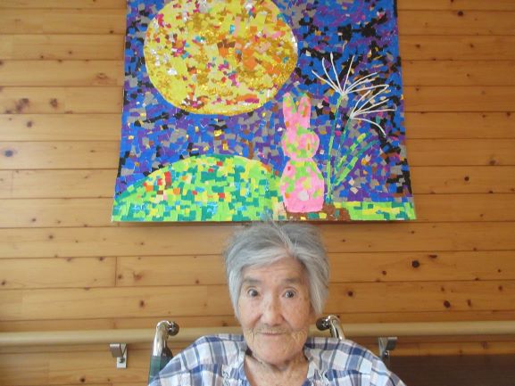 今年の作品は色紙でちぎり絵【満月とウサギ】です。