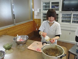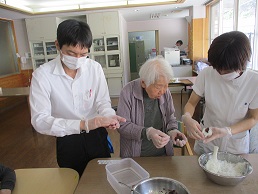 4月誕生会の後、みんなで「桜餅」を作りました。