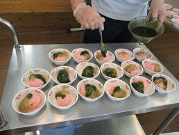 職員が山で葉っぱを採取し、中身も職員と利用者さんで