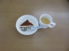 本日のメニュ〜は、ケーキとコーヒです。