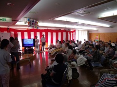 紙芝居、スライドショーを見ていただき、カラオケ