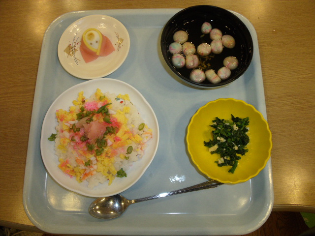 喫茶コーナーでひな祭りのケーキと夕食会にちらし寿司を