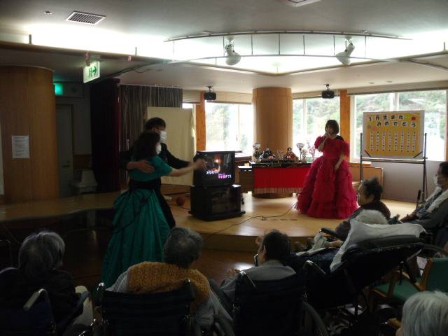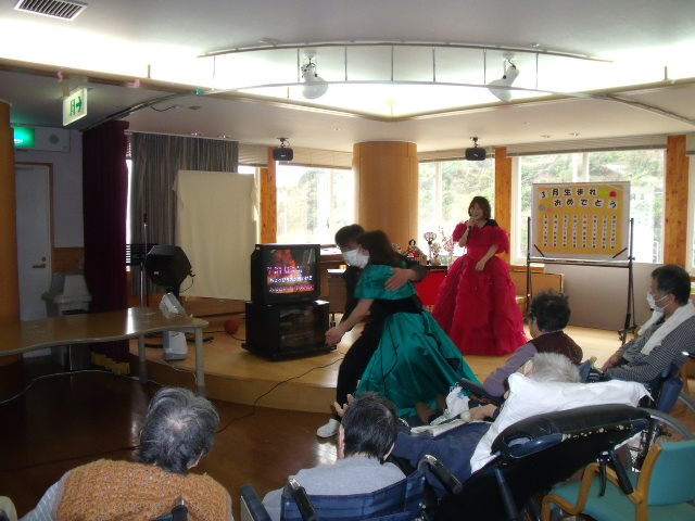 職員による催しで歌披露し会場を盛り上げてくれました。