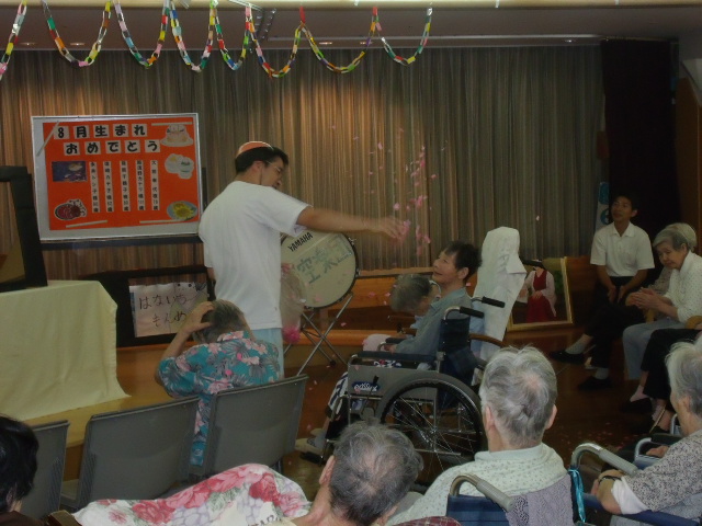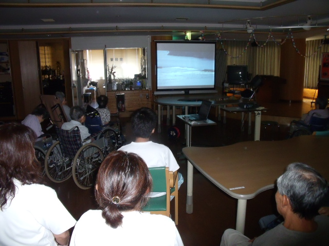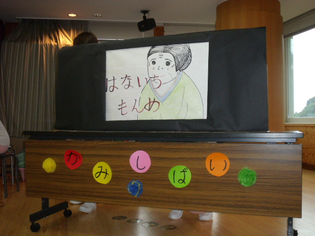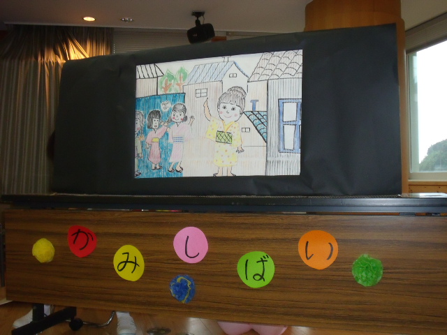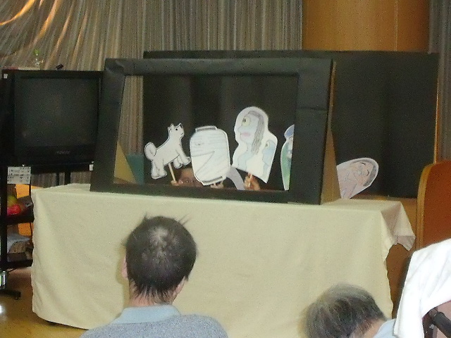 すみれ棟の催しで紙芝居を行いました。テープに音楽