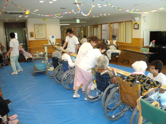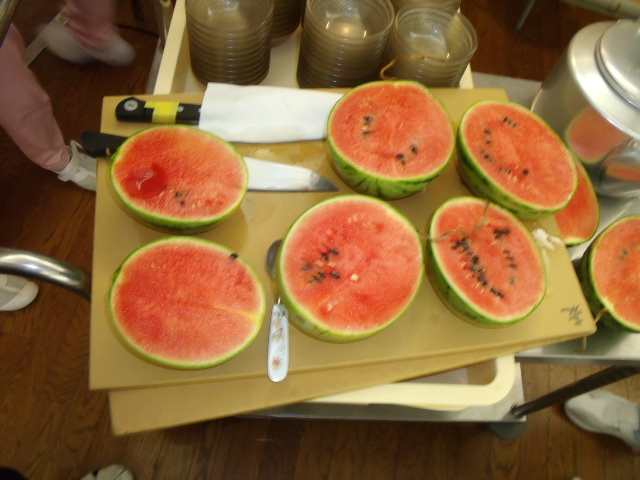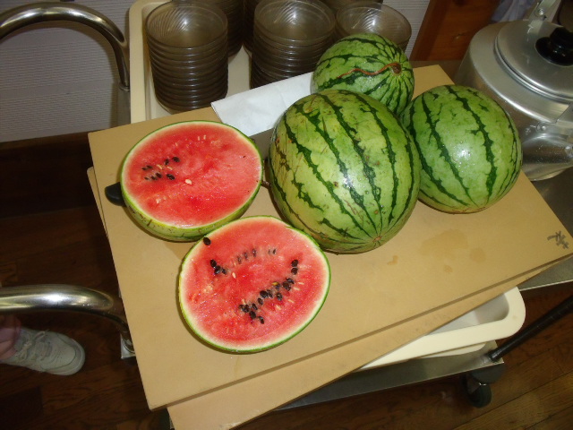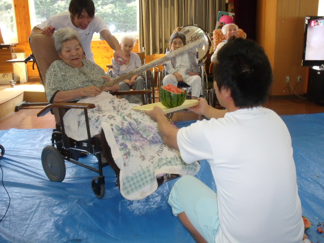 本日、7月催しでスイカ割り大会行いました。車椅子の方々