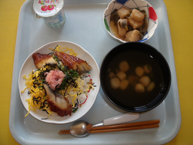 7月27日 土用の丑 夕食に鰻ちらし寿司を提供し