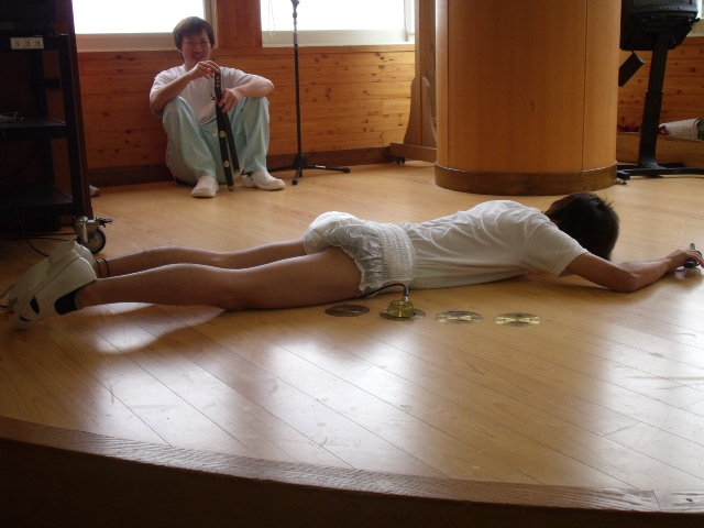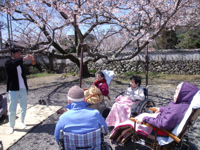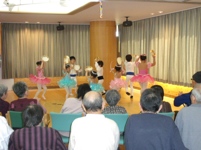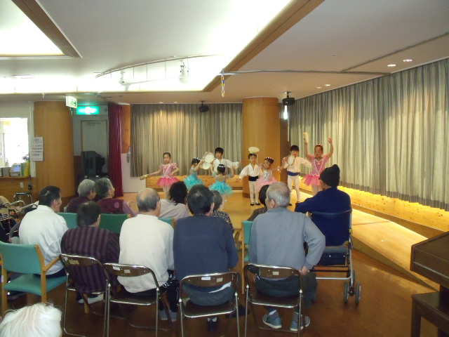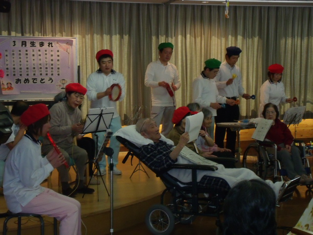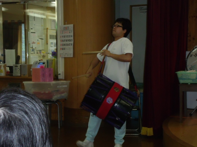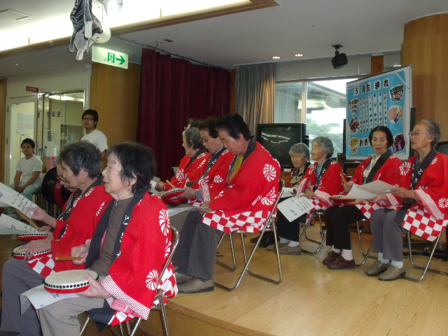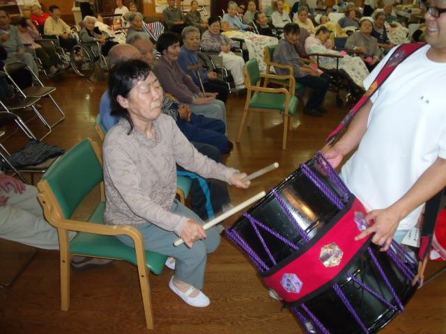 施設内で太鼓の音が響き渡り迫力満点の中、利用者