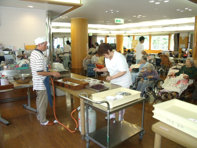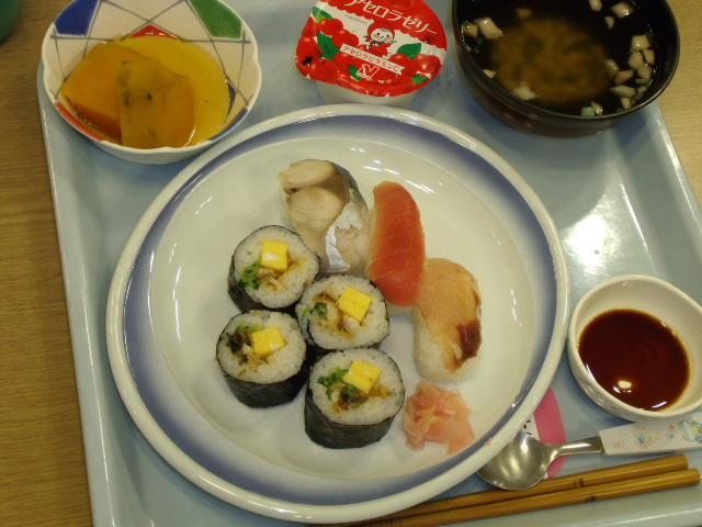 夕食に開園記念日で寿司を提供し楽しい時間を