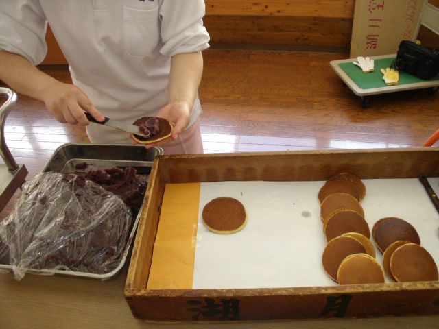 どら焼きを振る舞ってくれ皆さん大喜びで