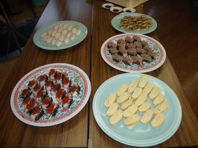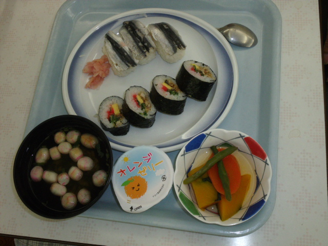 ました。夕食に鰯寿司・すまし汁・デザートに喜んで