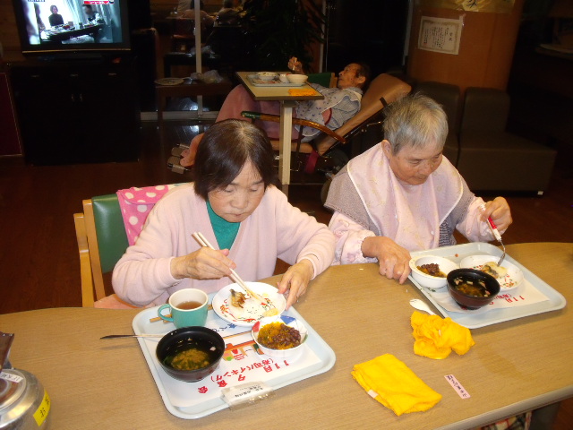 し夕食会(エビフライ・ケーキーを提供)盛り上がり