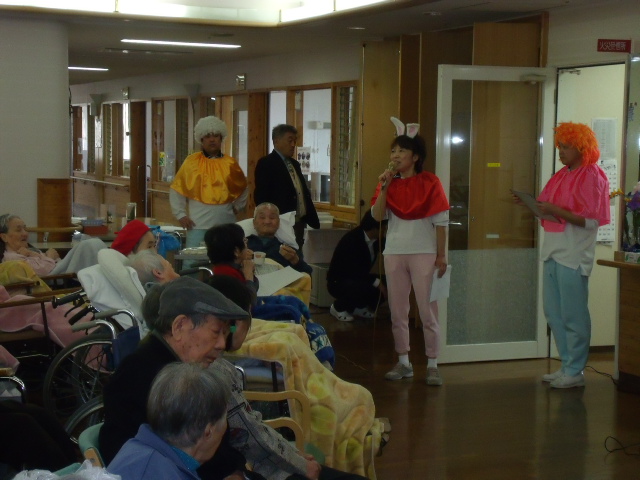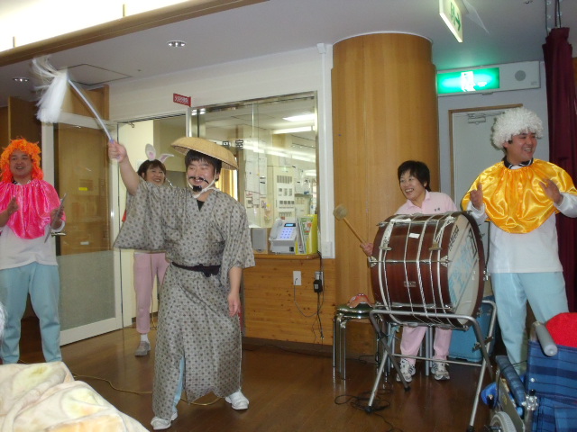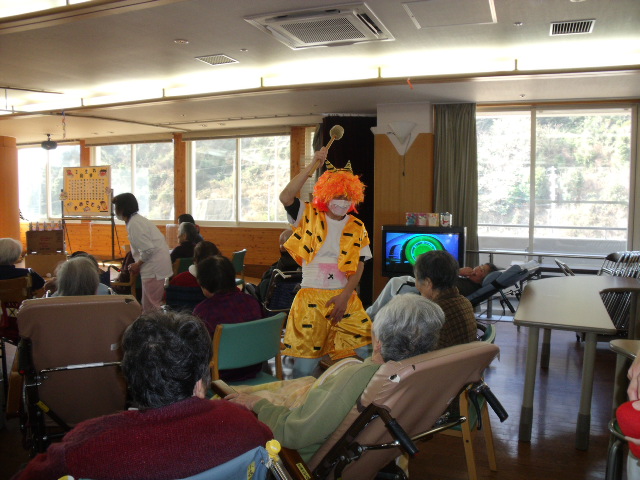 職員が鬼に仮装し普段見せない動きで会場を盛り上げ