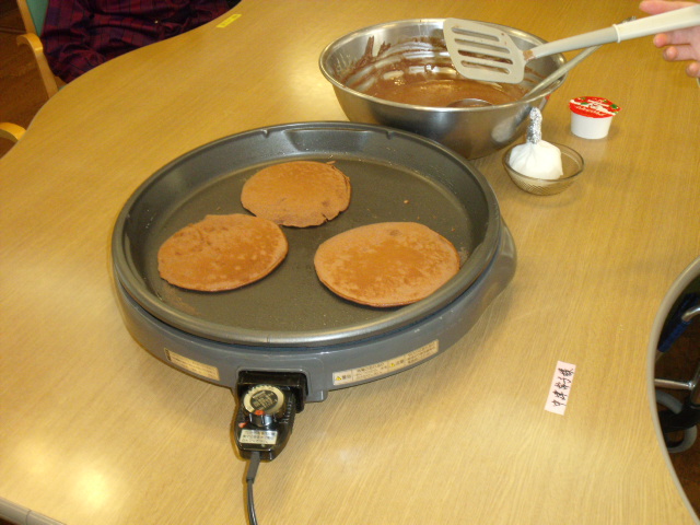 喫茶コーナーでは少し早いがチョコ味ホットケーキ