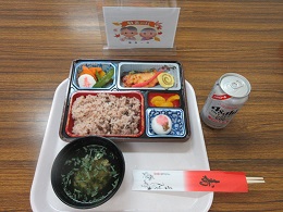 敬老週間で、「お赤飯の昼食」と「ノンアルコールビール」で
