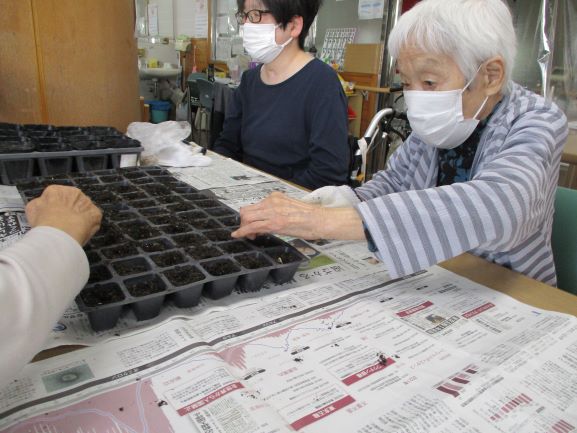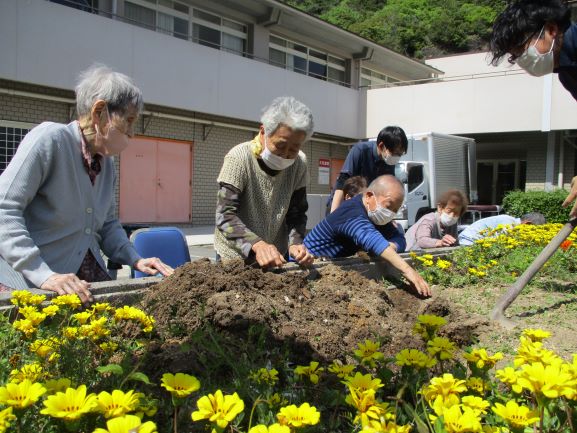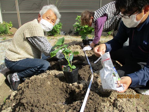 5月20日美浜ディサービスの畑にナスときゅうりの苗が入りました♪
