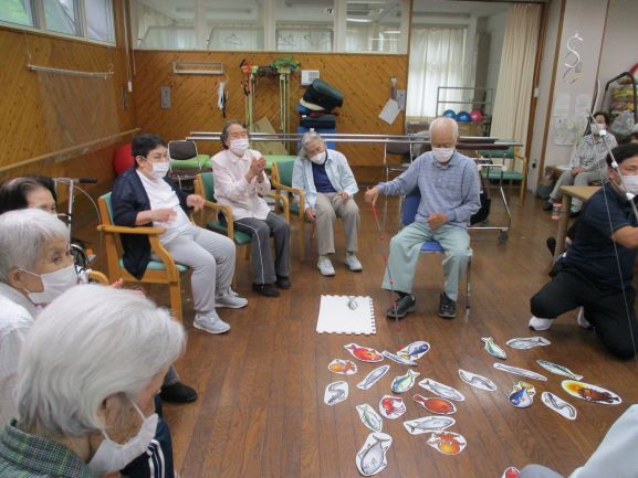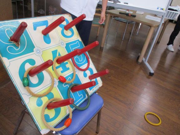 レクリエーションで輪投げをしました。