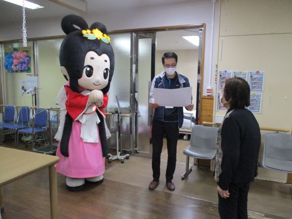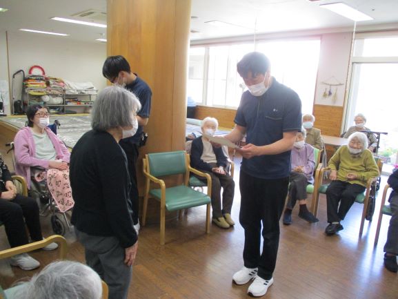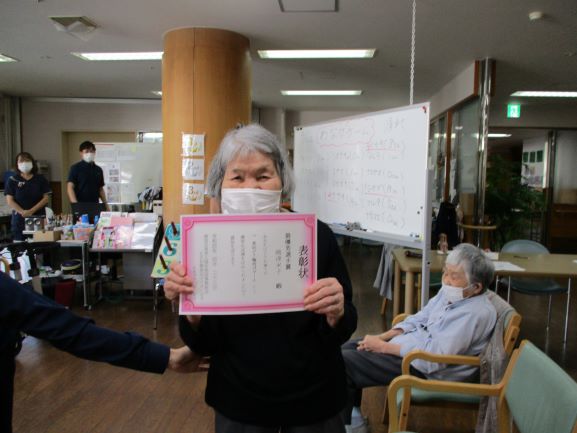 利用者様の代表者に賞状を受け取ってもらい