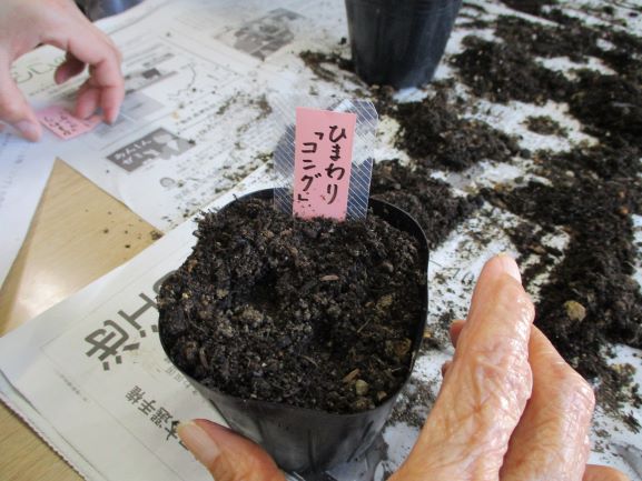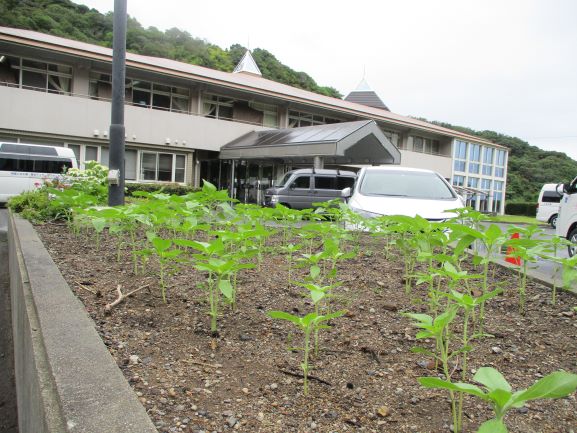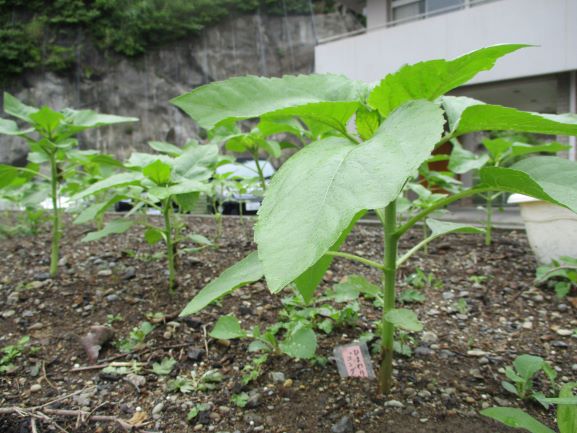 先月、皆さんと一緒に花壇へ向日葵を植えました。