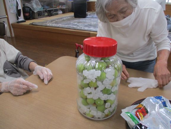 皆さんで梅シロップ作りをしました。
