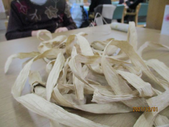 ほどいてぺらぺらになった紙紐を使って