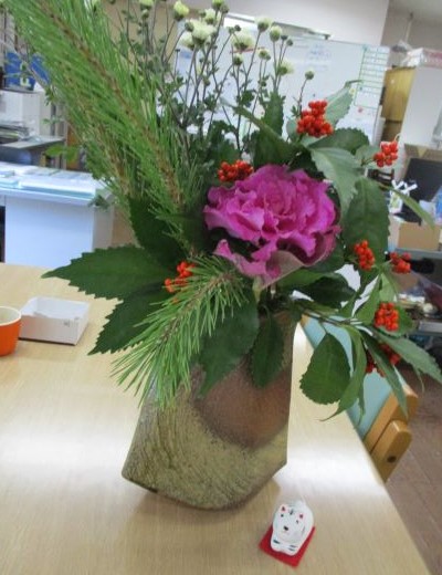 お正月用にお花も生けて頂き