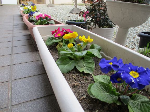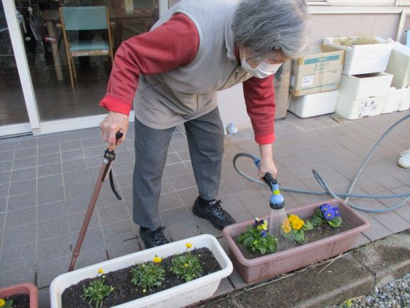 植えて頂いた色鮮やかなお花をデイサービスの中庭に