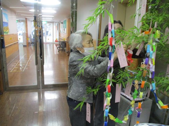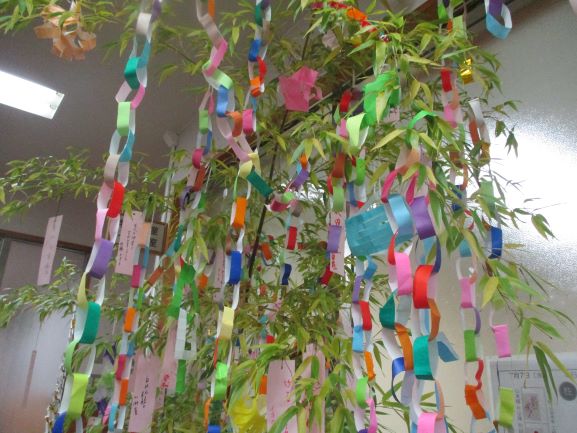 又、折り紙を使って沢山の七夕飾りを作り、飾りつけも