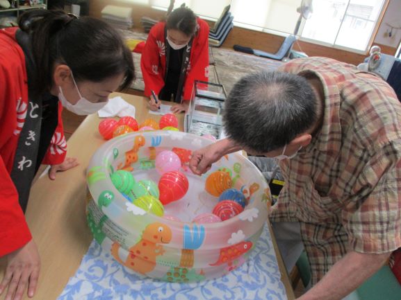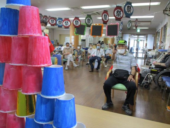 提灯のクラフト等飾りつけもし、夏祭りの雰囲気