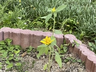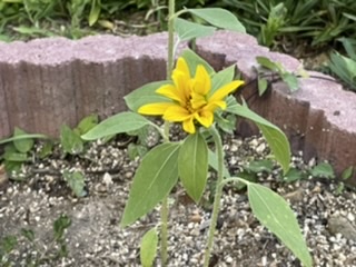 施設の花壇で可愛らしいひまわりが開花しそうです。