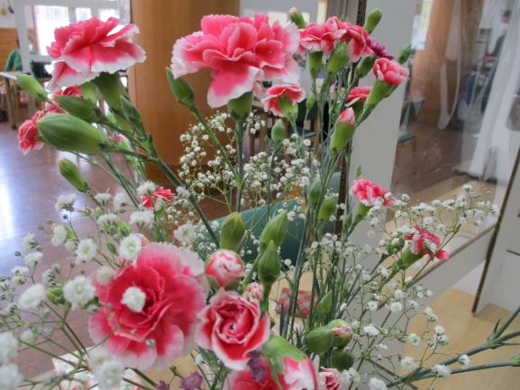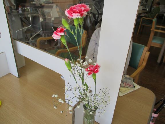 デイルームにもカーネーションを飾りました。