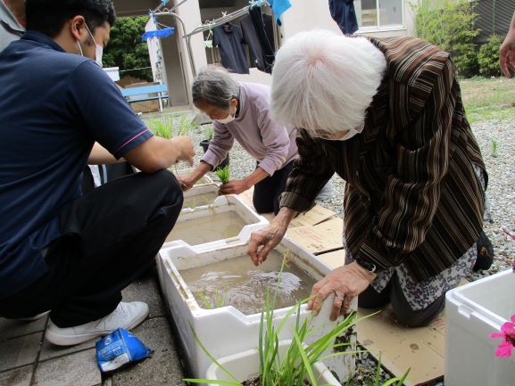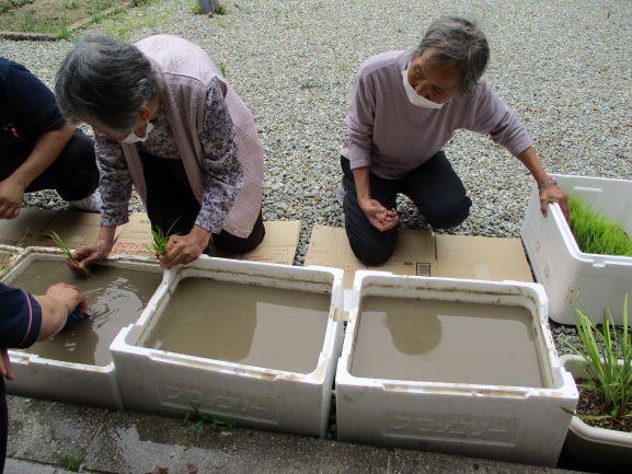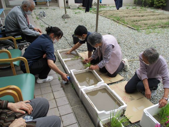 梅雨を前に、美浜デイでは本日“田植え”を行いました。