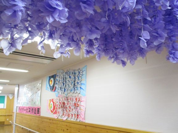 施設の玄関に飾って皆さんをお出迎え