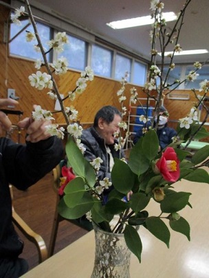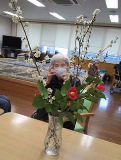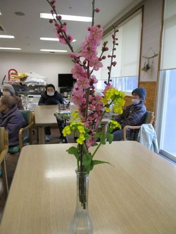 美浜デイに梅の花や菜の花、椿を飾りました。