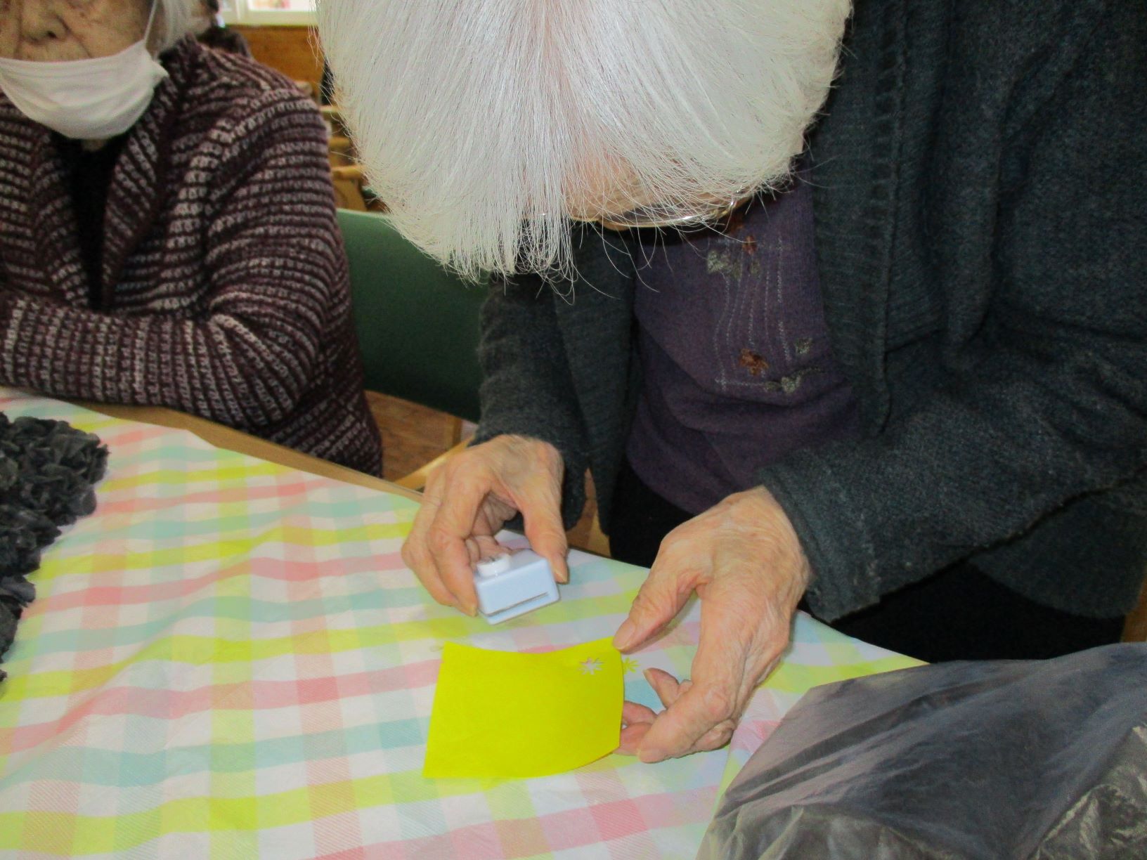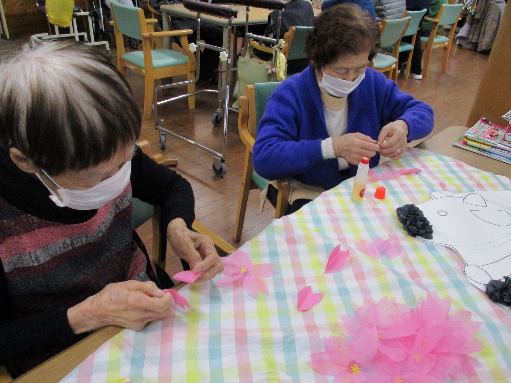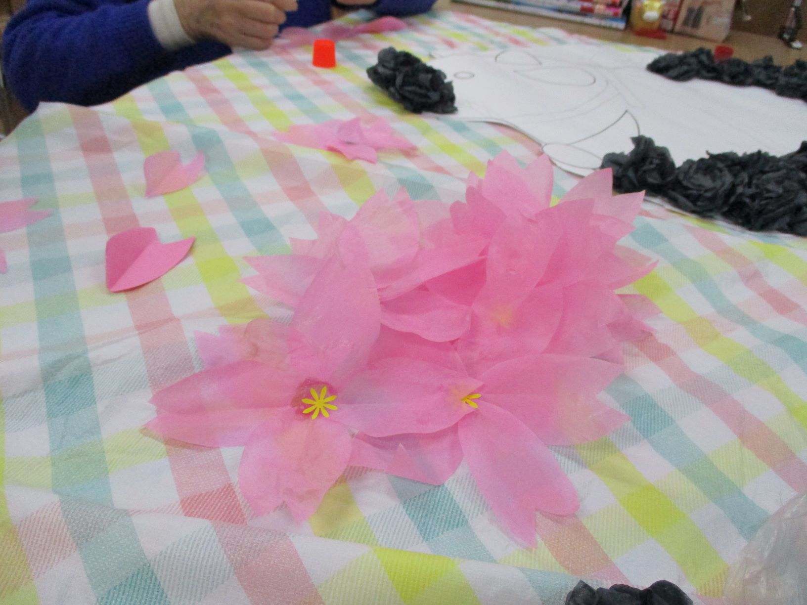 お花紙を切ったり丸めたり、1つずつ貼り付けたり、