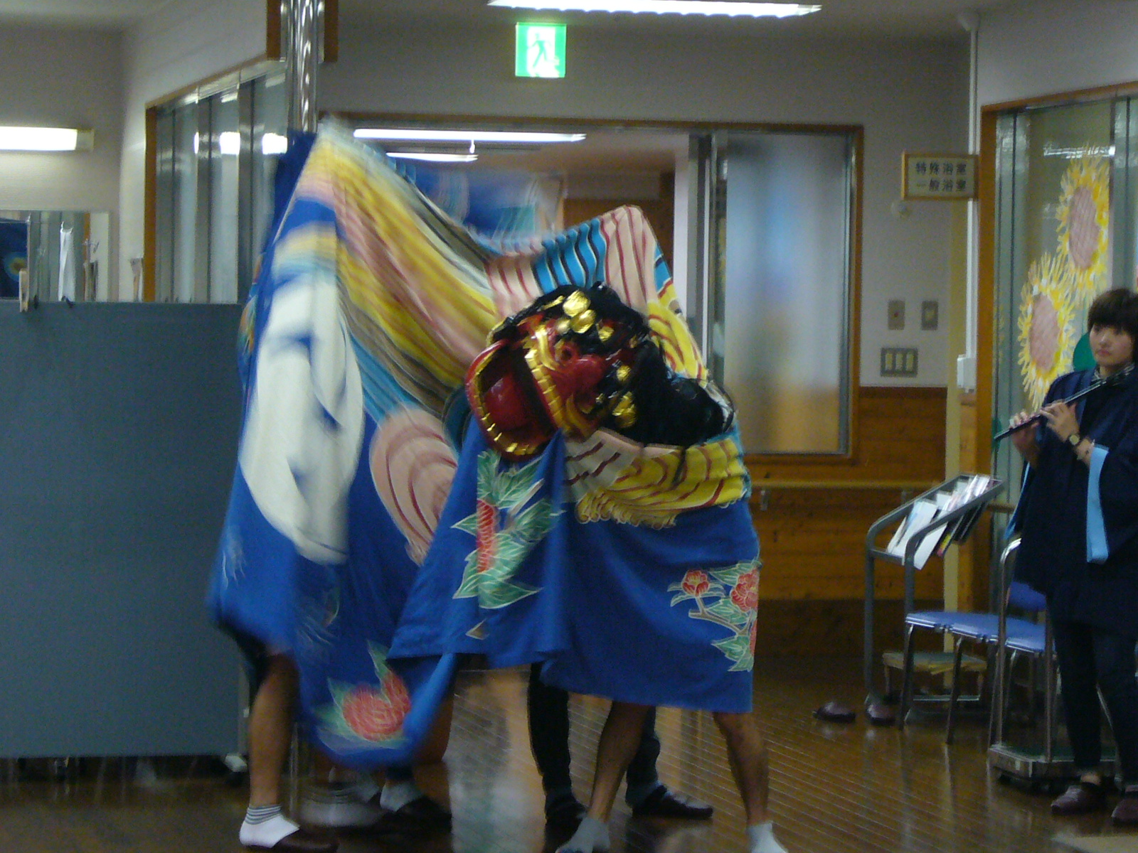 今日は吉原祭りの“かさやぶち”獅子舞が来寮してくださいました。