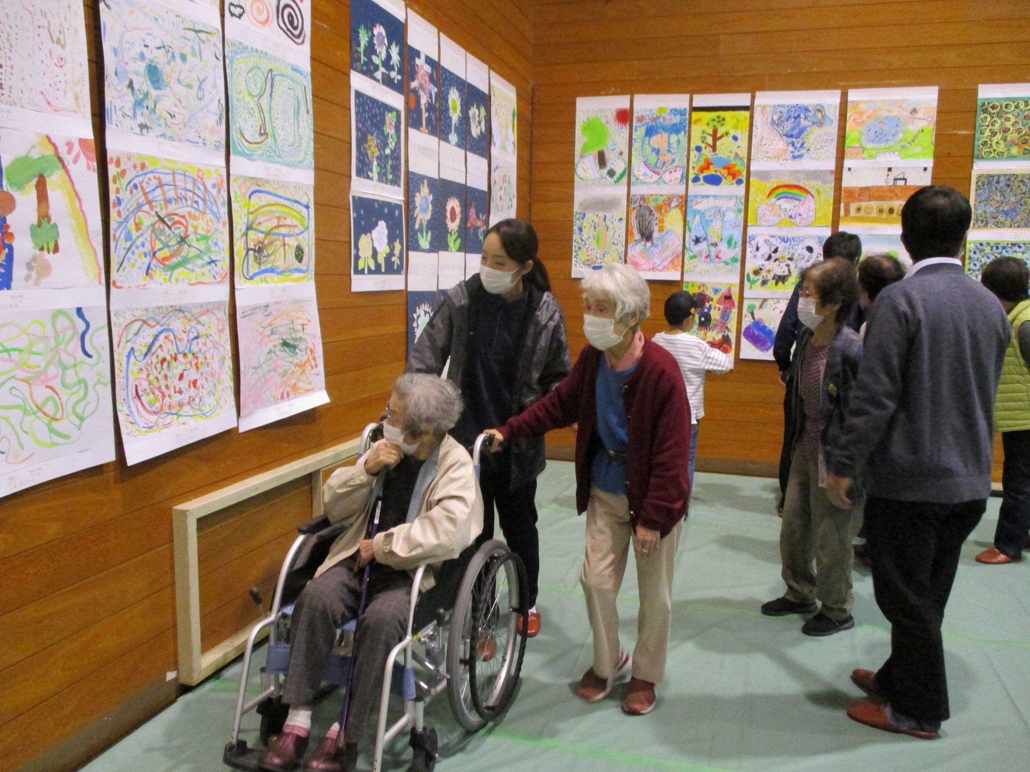 地域の方々の作品や近隣の小学校・保育園児の作品などが展示されていて