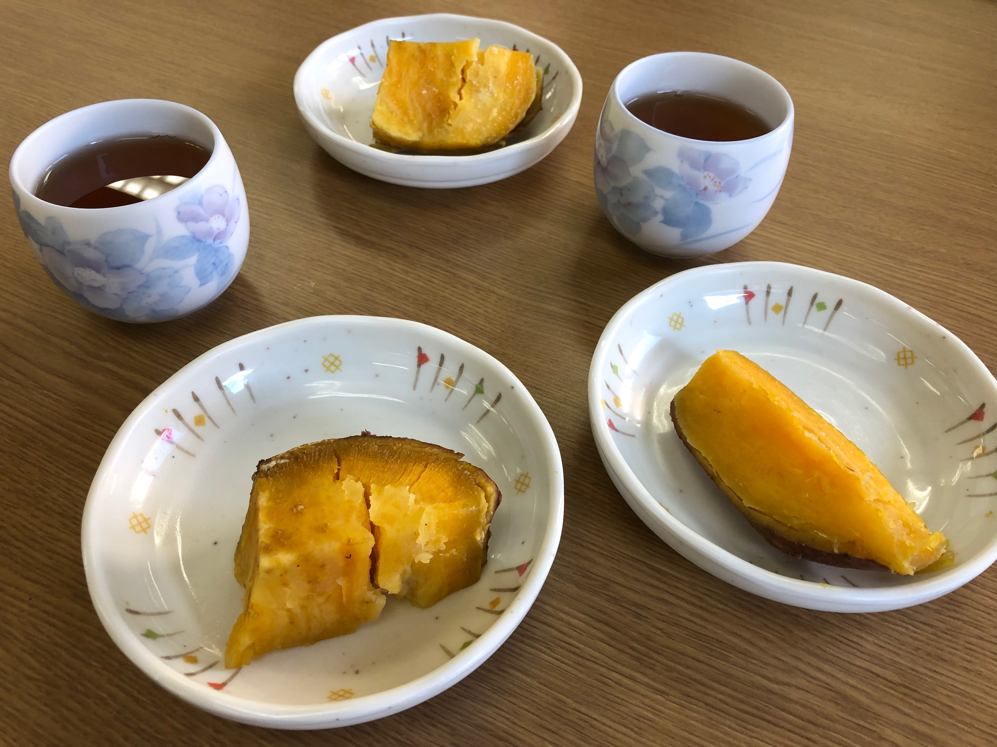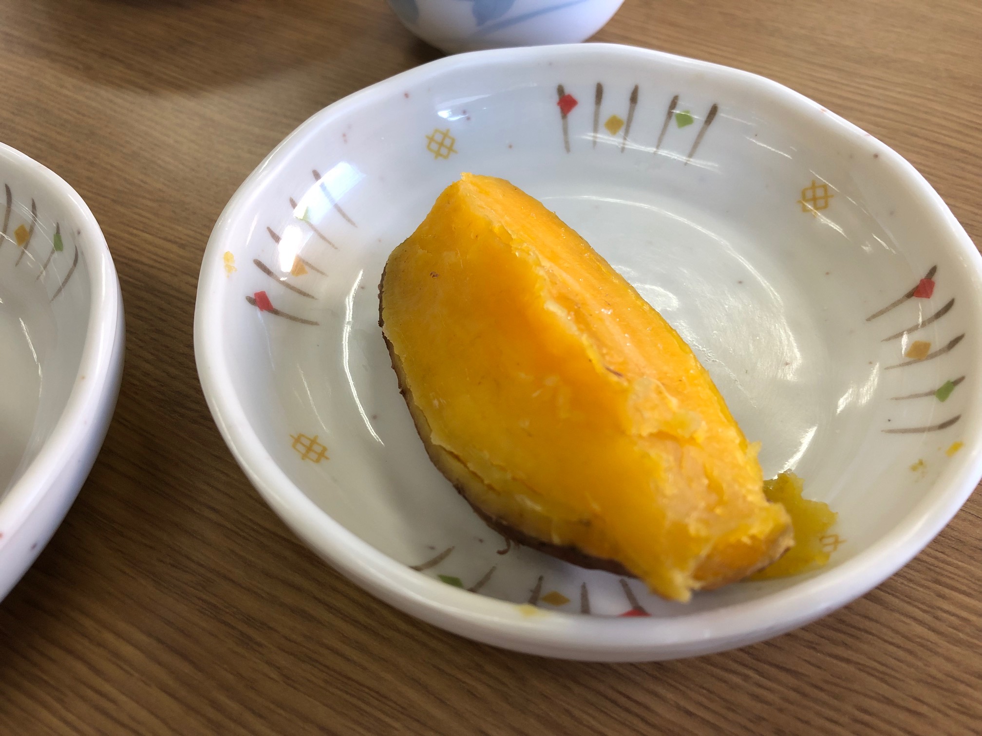 先日、皆さんと掘った安納芋を蒸して、おやつに頂きました。