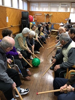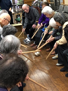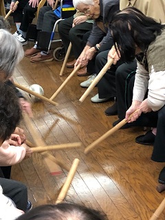 今日は午後のレクリエーションの時間、棒サッカーを行いました。