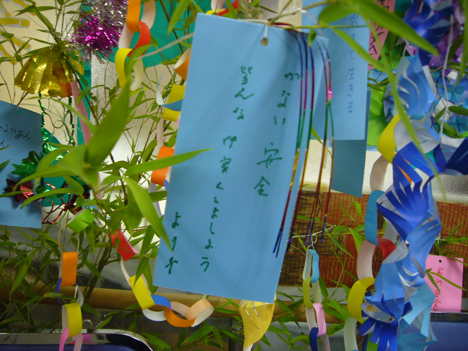 一人ずつお願い事を短冊に書いて飾る等、して頂きました。